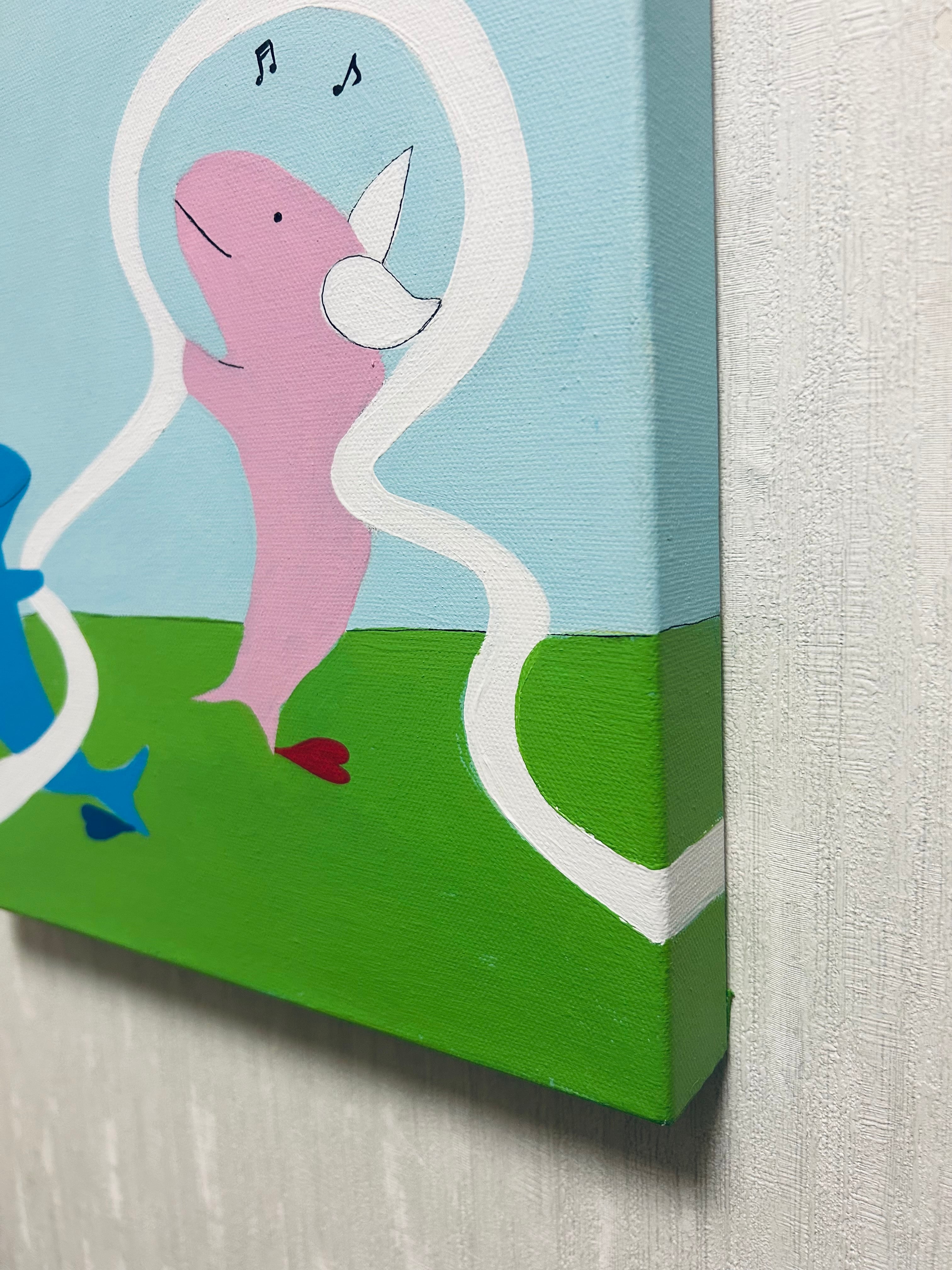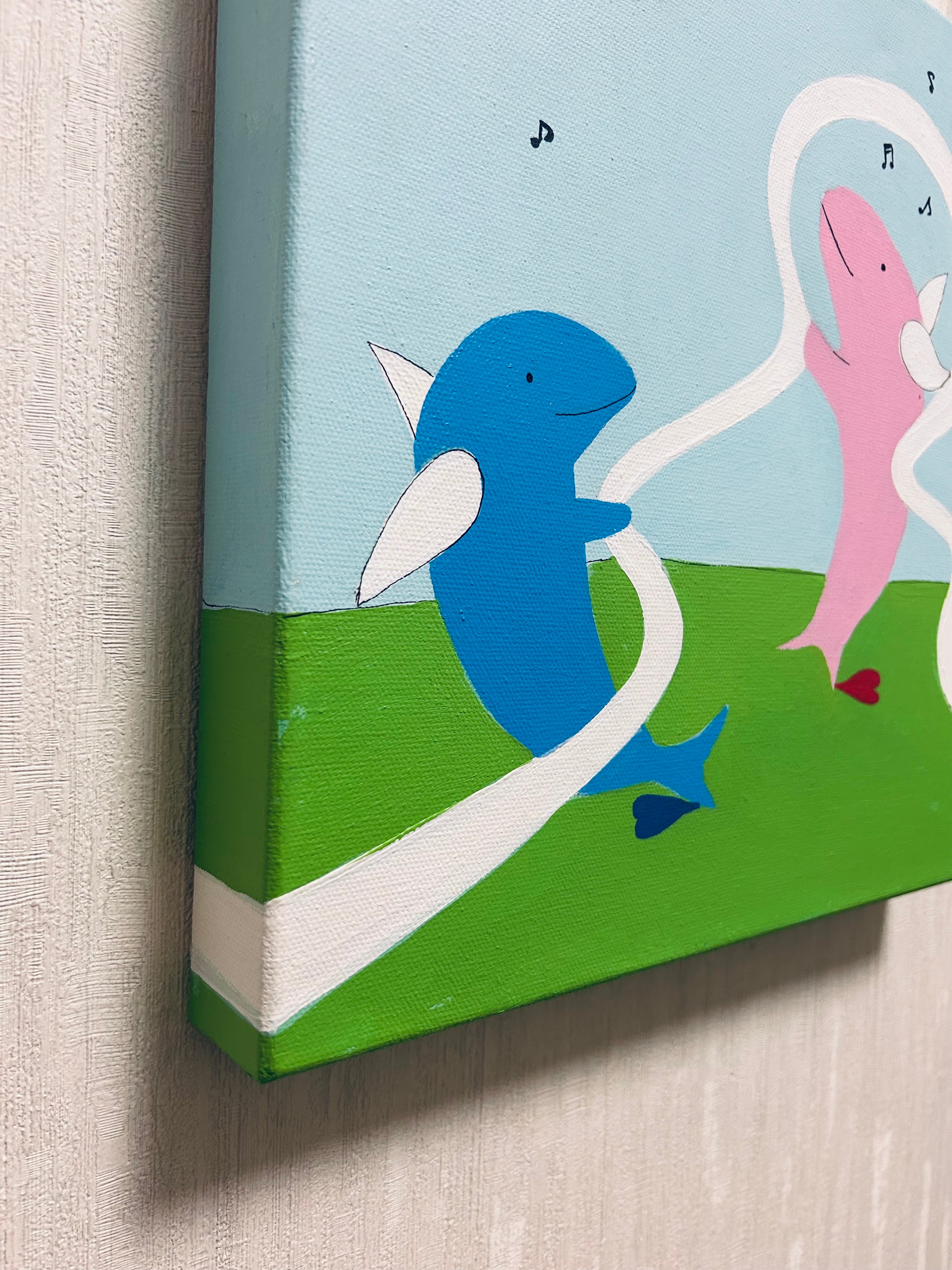 可愛いイルカの絵画。