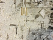 2022年に京都宇治市萬福寺アーティスト・イン・レジデンスで、奈良の「ますみ・麻墨」で描いた作品に、大麻布・麻のオガラ・精麻を結び、切り貼り・新商品の伊勢麻墨で加筆しました。